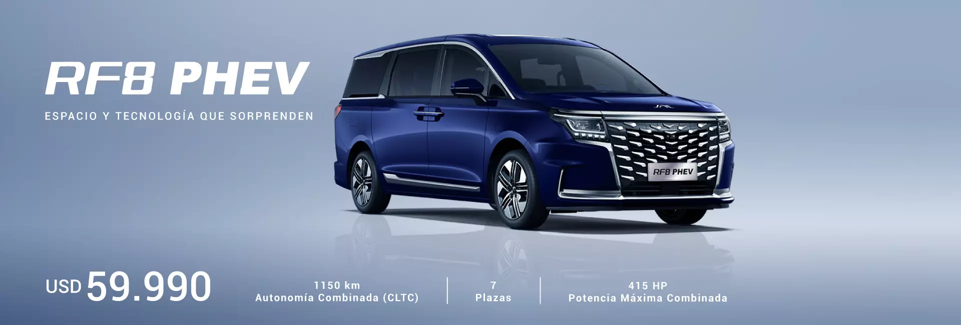 La JAC RF8 PHEV sorprende por su interior espacioso y versátil, pensado para viajar con total comodidad. Con capacidad para siete pasajeros, cuenta con asientos tapizados en eco-cuero, pantalla de 12.3” y climatización independiente para las plazas traseras. El diseño moderno y los detalles de confort elevan la experiencia a bordo, tanto para el conductor como para quienes lo acompañan.